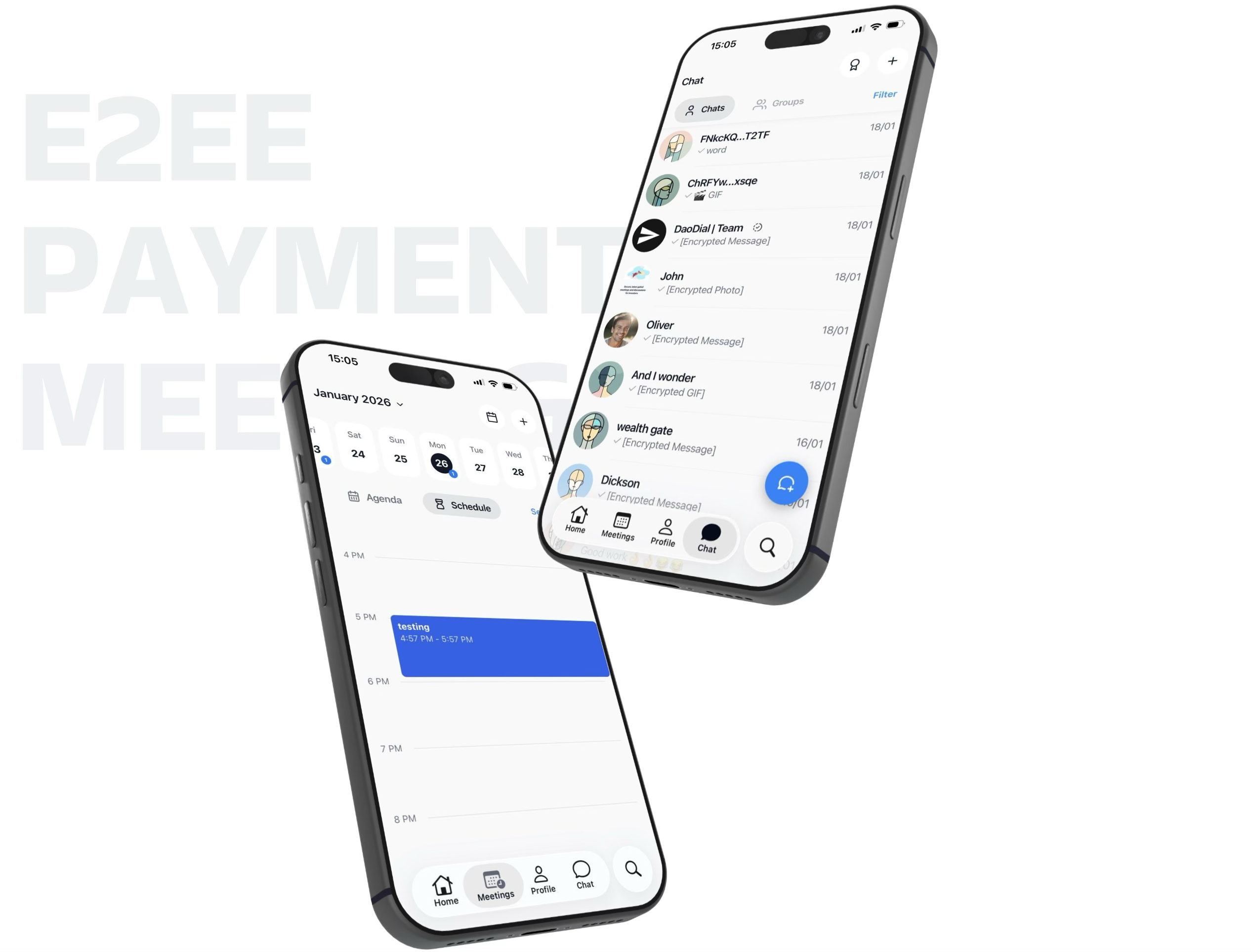 Every message, every file, every call is protected by end-to-end encryption. Not even DaoDial can read your conversations — true privacy built for Web3 communities.